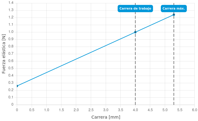- Fuerza de resorte durante la carrera de trabajo: 1 N