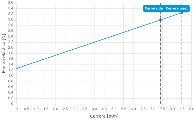 - Fuerza de resorte durante la carrera de trabajo: 3 N