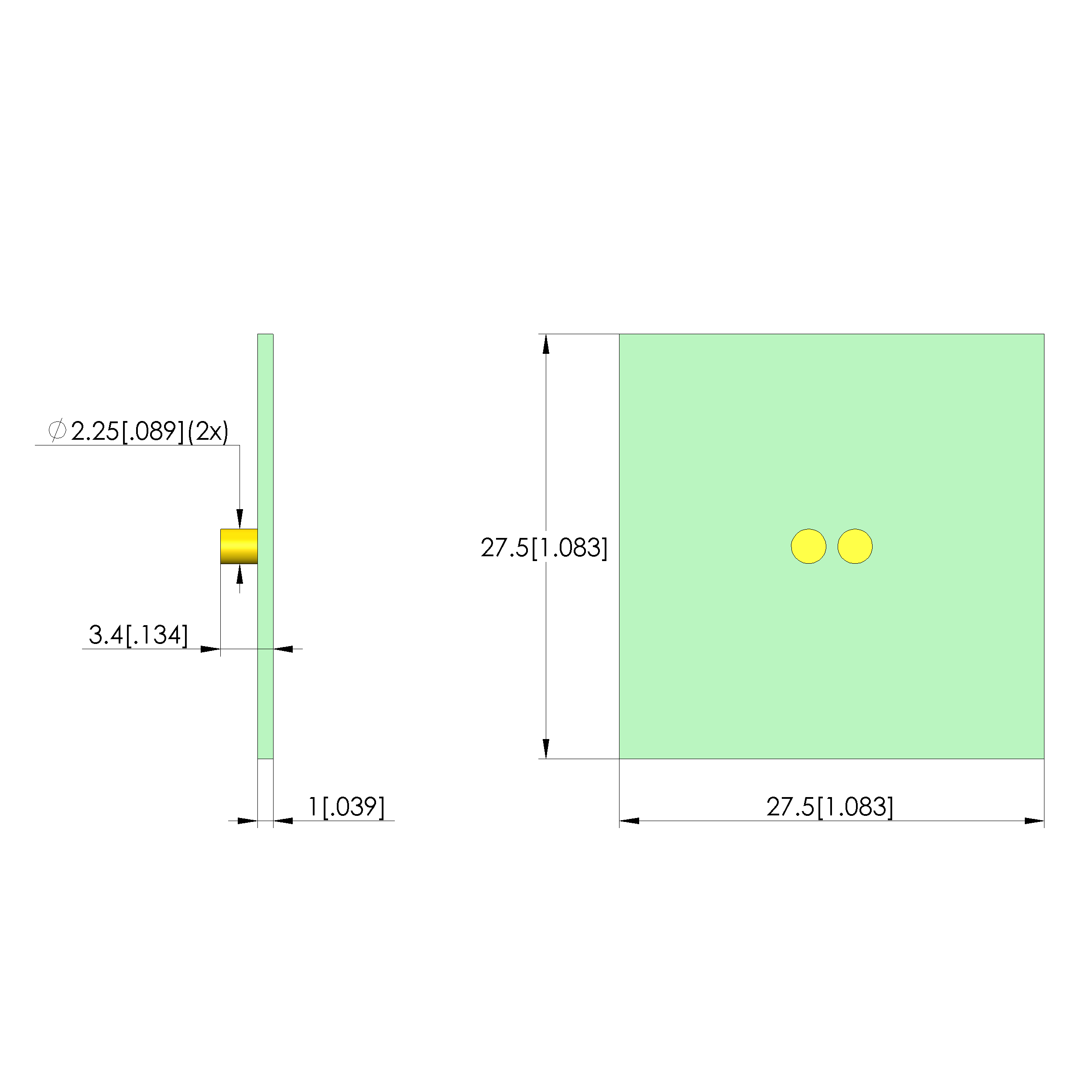 | Dimensiones exteriores (AnxPxAl): | 27,5 x 27,5 x 3,4 mm |
