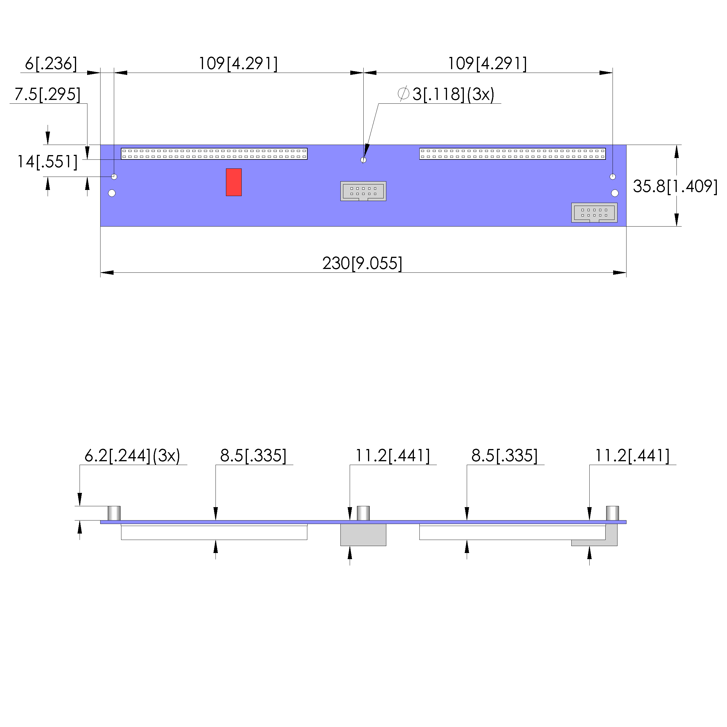 - Dimensiones exteriores (AnxPxAl): 230 x 35,8 x 17,4 mm