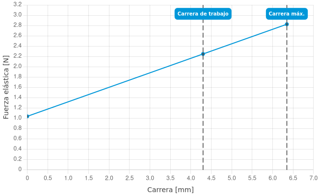 • Fuerza de resorte durante la carrera de trabajo: 2,25 N