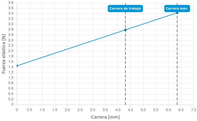 | Fuerza de resorte durante la carrera de trabajo: | 2,8 N |