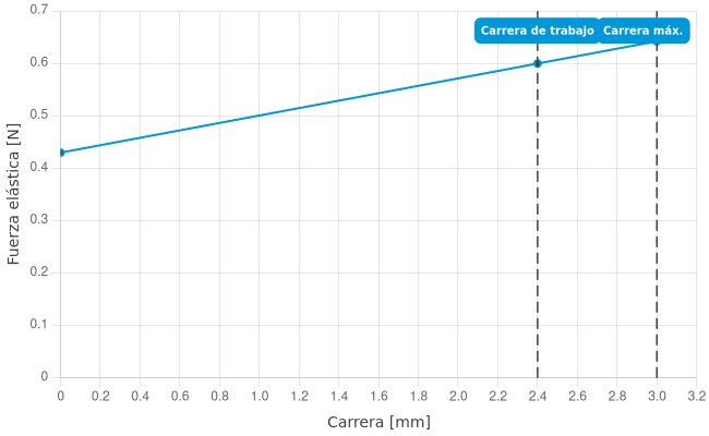 | Fuerza de resorte durante la carrera de trabajo: | 0,6 N |