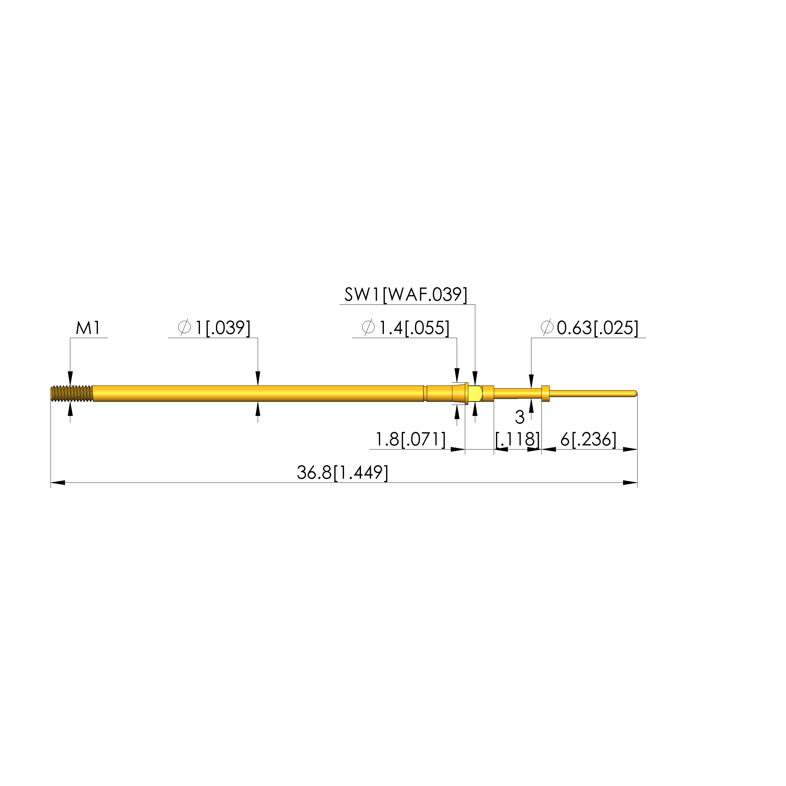 - Longitud total: 36,8 mm