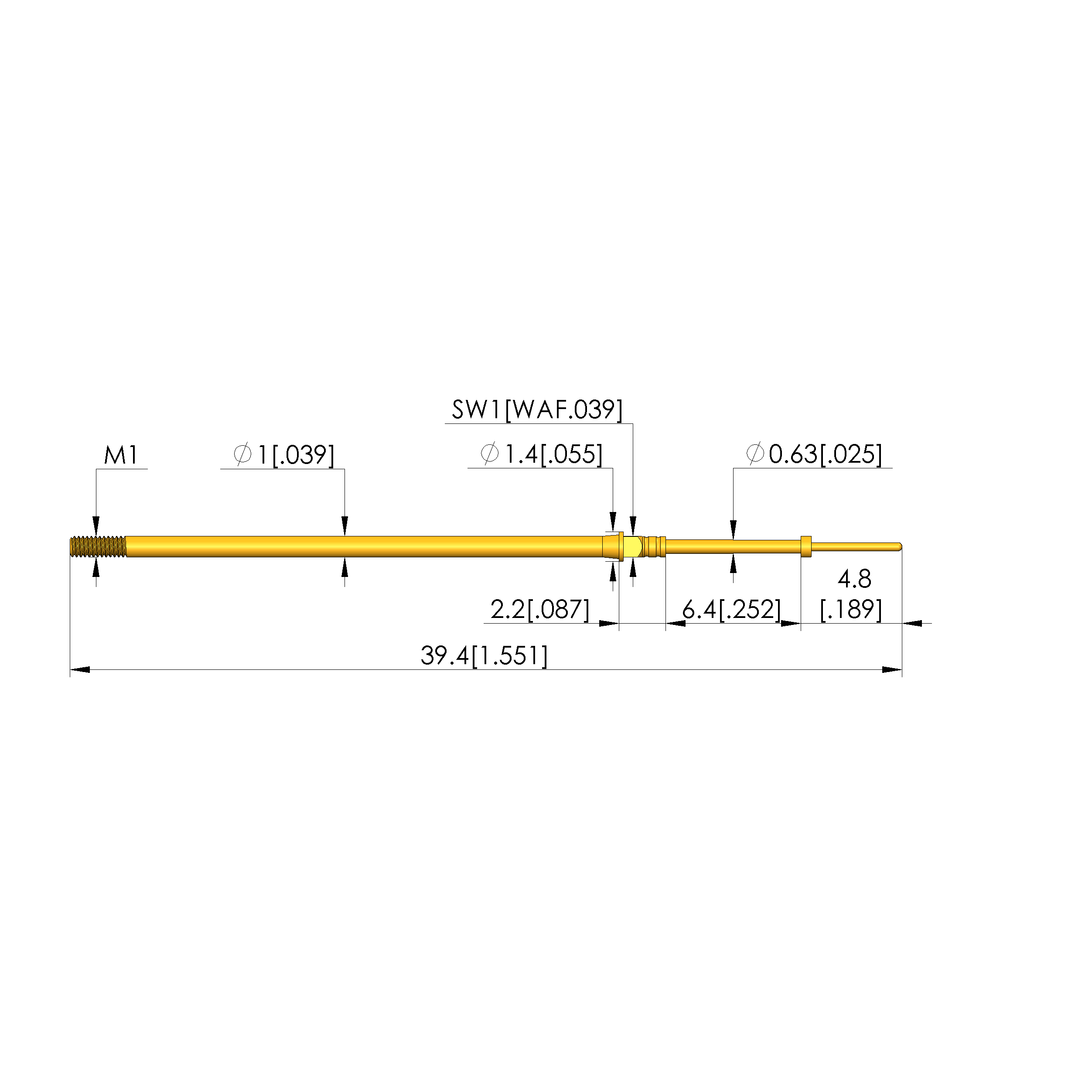 • Longitud total: 39,4 mm