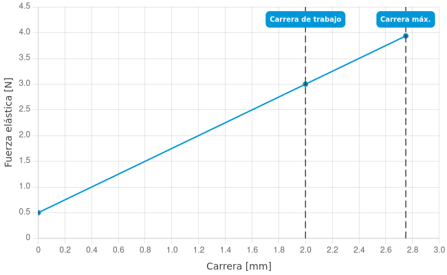 - Fuerza de resorte durante la carrera de trabajo: 3 N