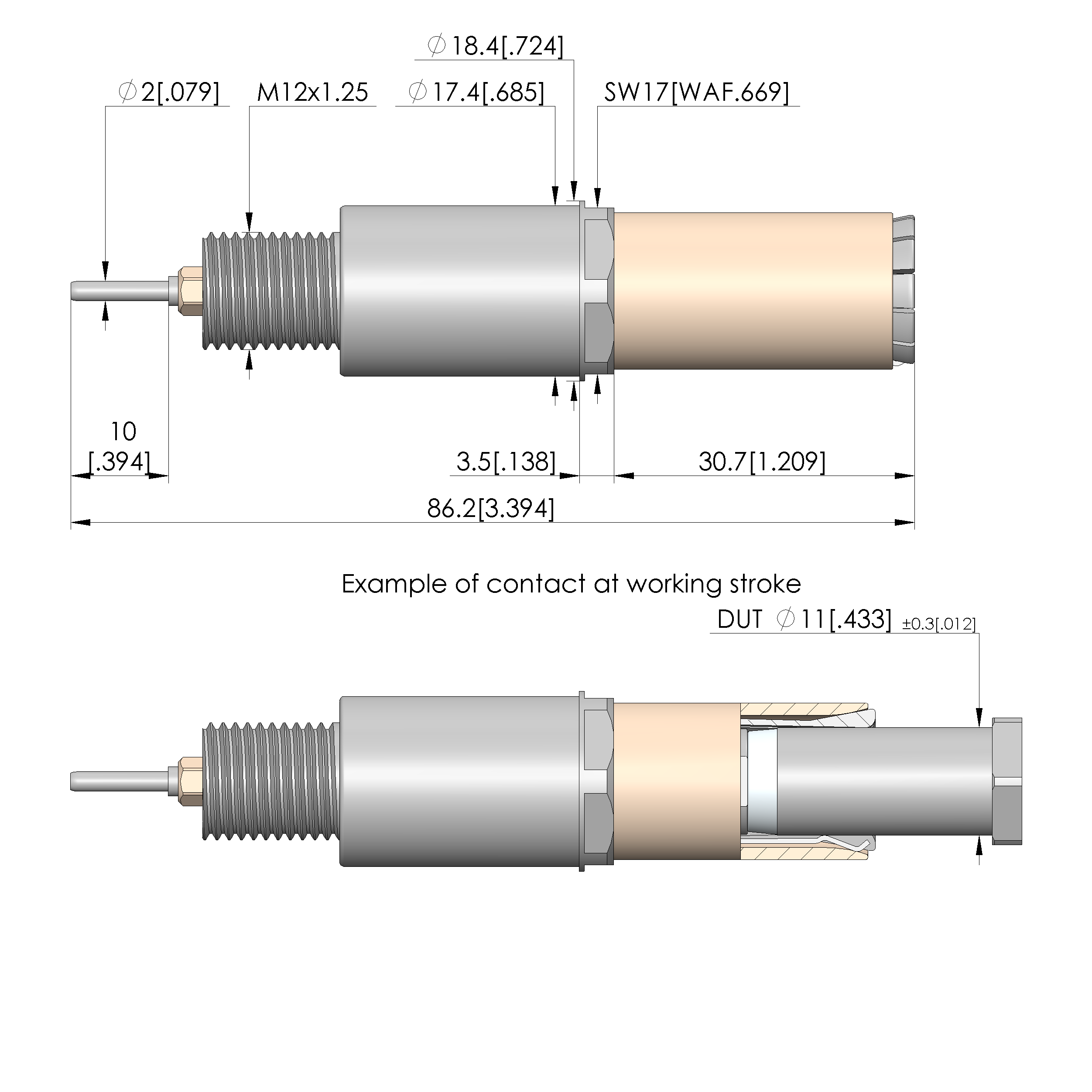 - Modo de conexión en la punta de contacto: Conexión roscada