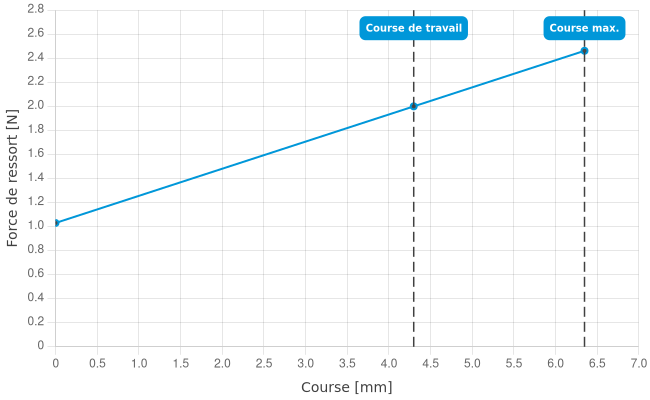 • Force de ressort en course de travail: 2 N