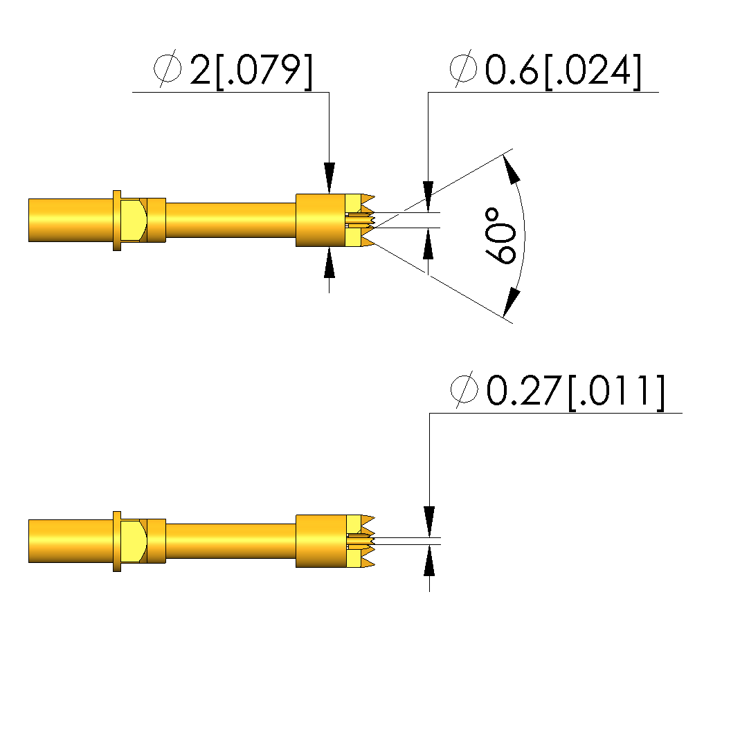 • Diamètre de tête conducteur de signaux: 0,27 mm