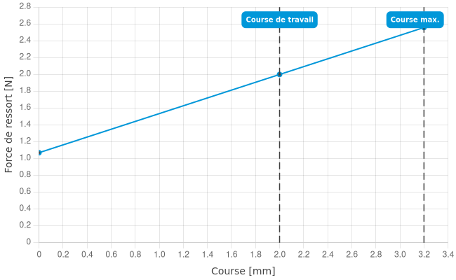 - Force de ressort en course de travail: 2 N