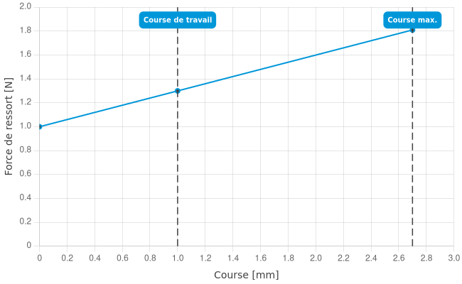 - Force de ressort en course de travail: 1,3 N