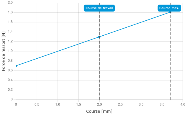 - Force de ressort en course de travail: 1,3 N