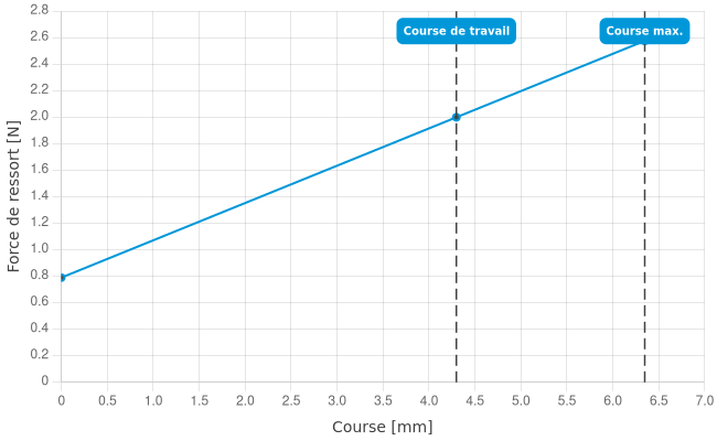 • Force de ressort en course de travail: 2 N