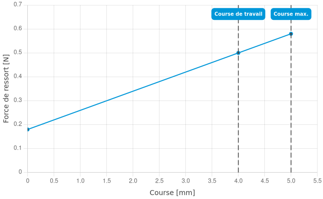 - Force de ressort en course de travail: 0,5 N