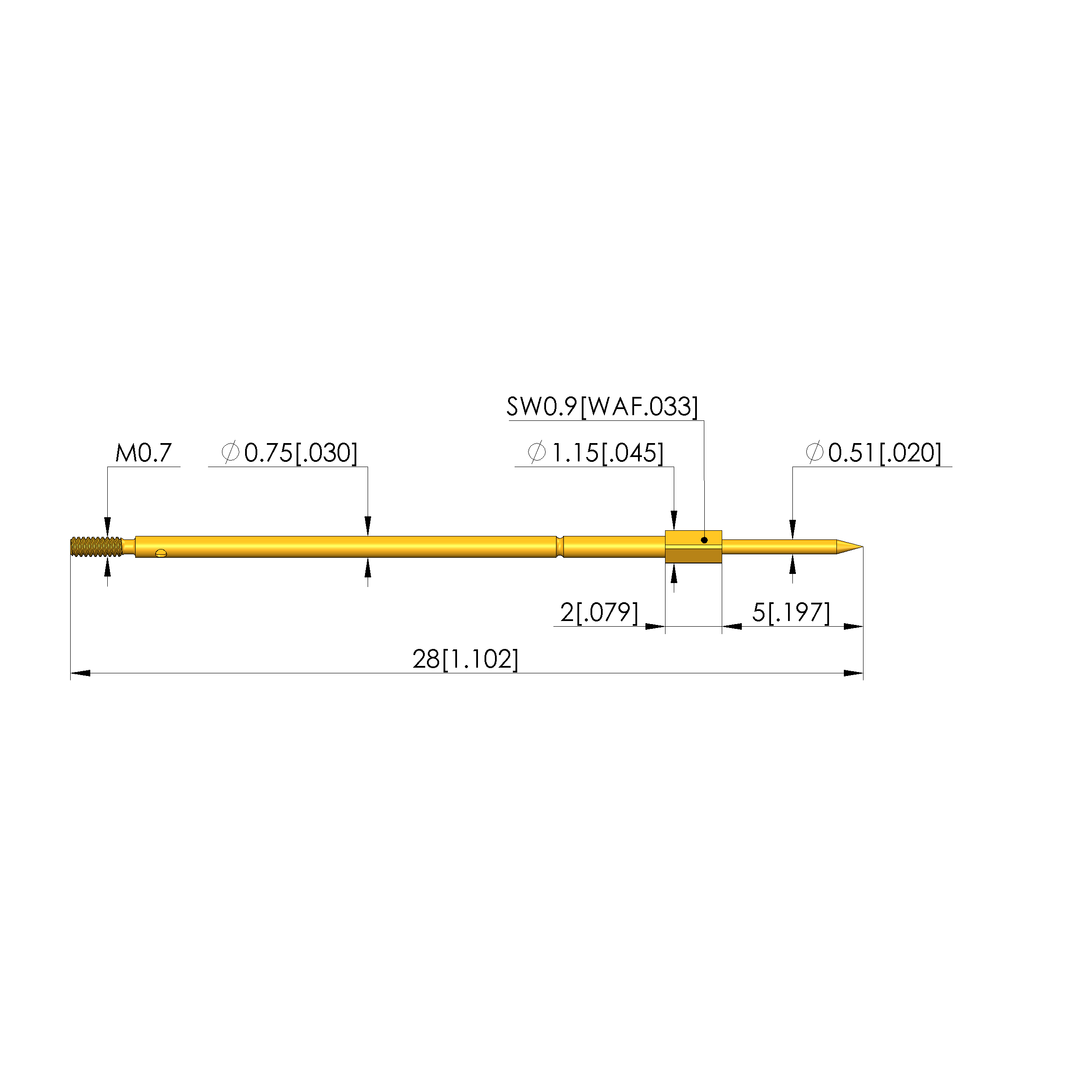 - Longueur totale: 28 mm