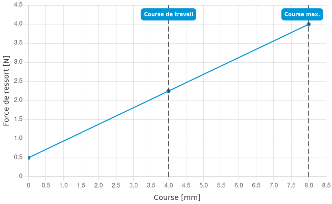 - Force de ressort en course de travail: 2,25 N