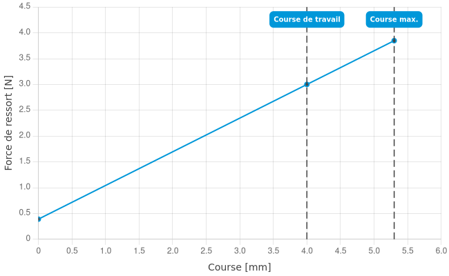 - Force de ressort en course de travail: 3 N