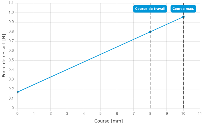 - Force de ressort en course de travail: 0,8 N
