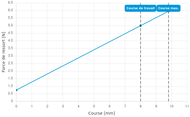 - Force de ressort en course de travail: 5 N