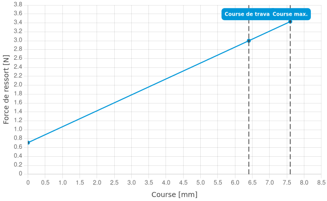 - Force de ressort en course de travail: 3 N