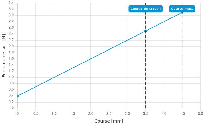 - Force de ressort en course de travail: 2,5 N