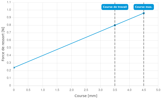 • Force de ressort en course de travail: 0,8 N