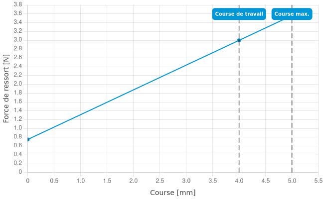 • Force de ressort en course de travail: 3 N