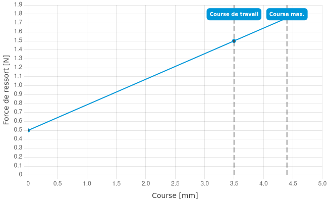 - Force de ressort en course de travail: 1,5 N