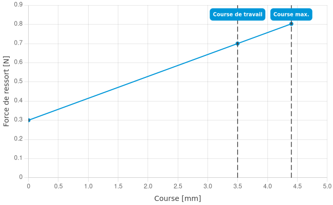 - Force de ressort en course de travail: 0,7 N