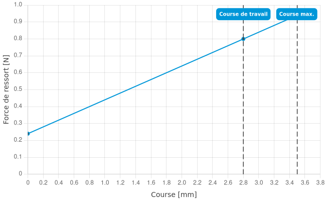 - Force de ressort en course de travail: 0,8 N