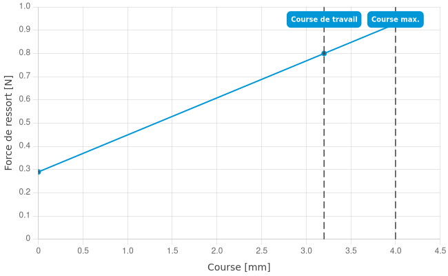 - Force de ressort en course de travail: 0,8 N