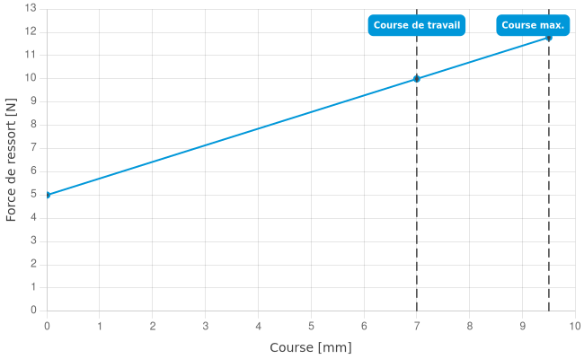 • Force de ressort en course de travail: 10 N
