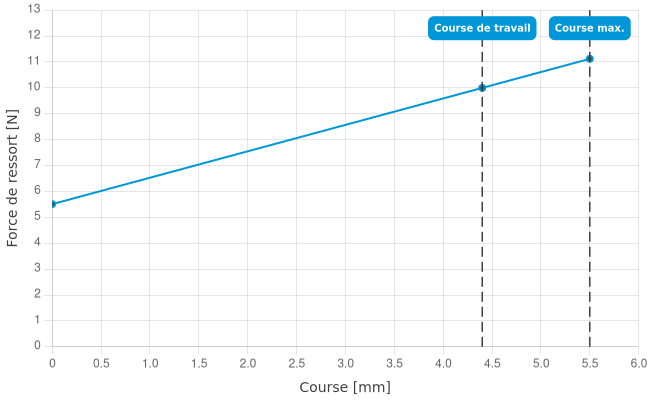 - Force de ressort en course de travail: 10 N