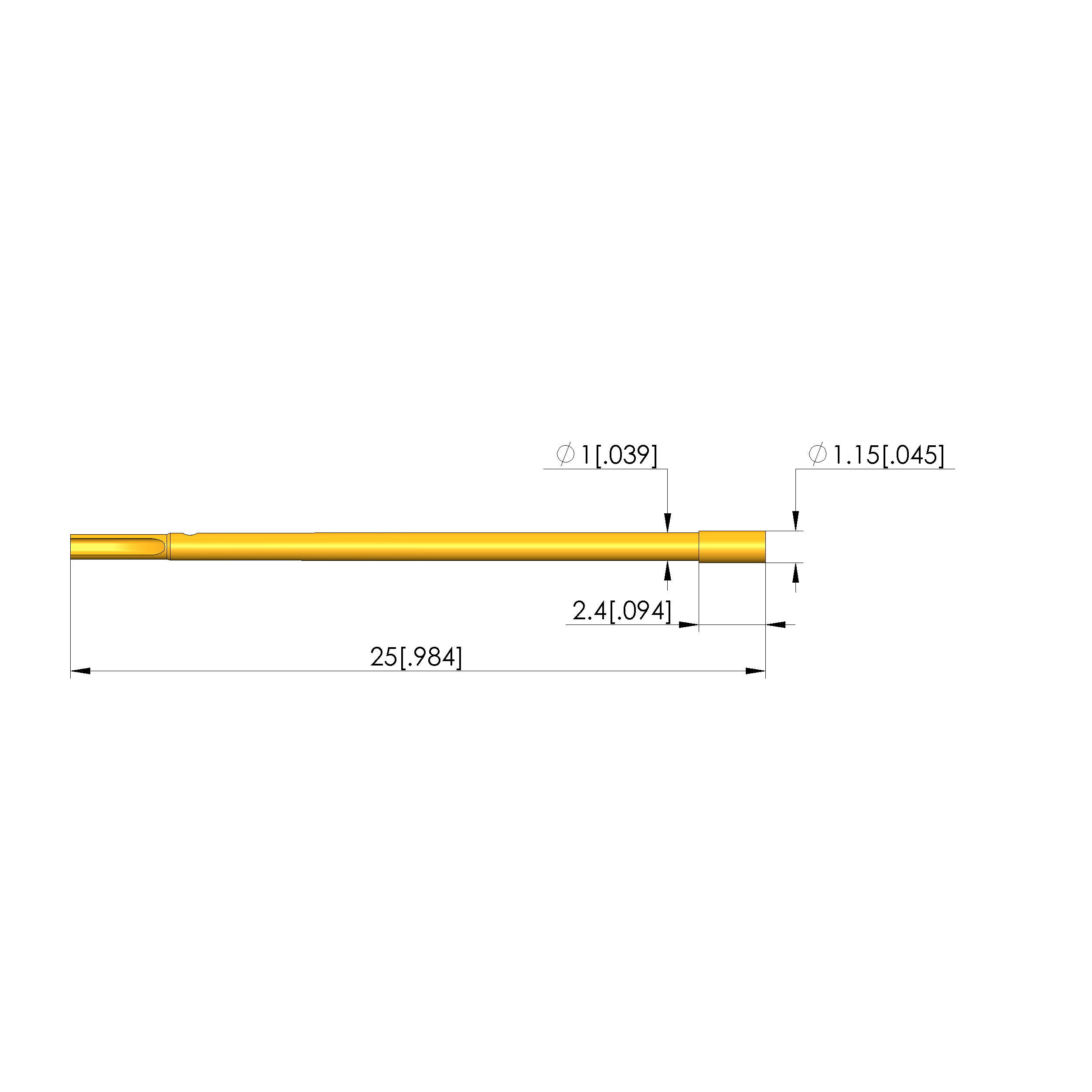 - Longueur totale: 25 mm