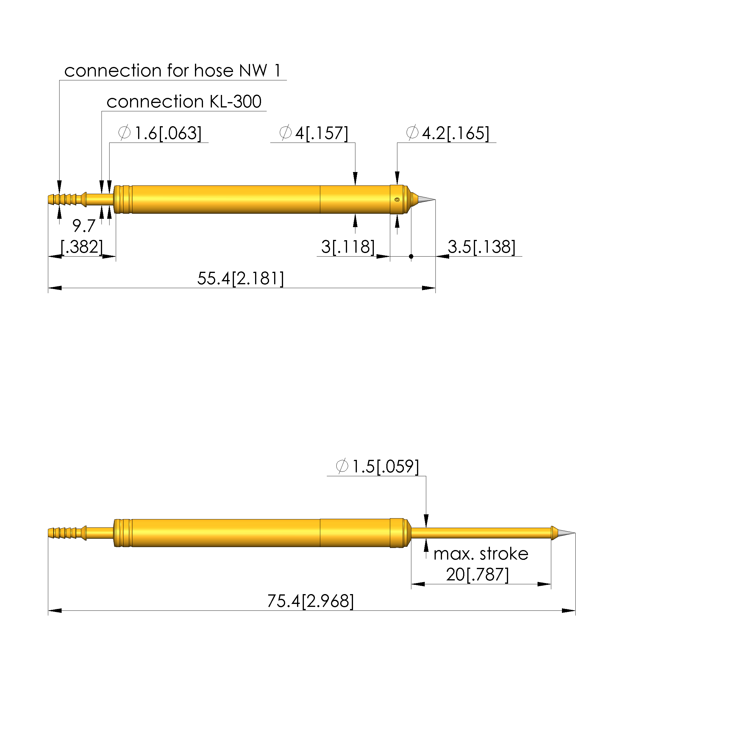 - Force de ressort en course de travail: 3,7 N