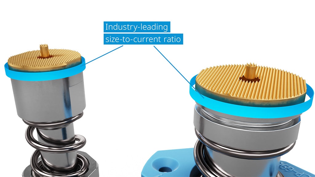 La serie 65x conduce correnti elevate direttamente attraverso il contatto a molla, senza alcun cavo in movimento.