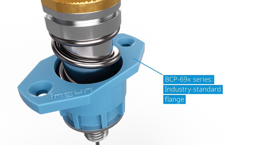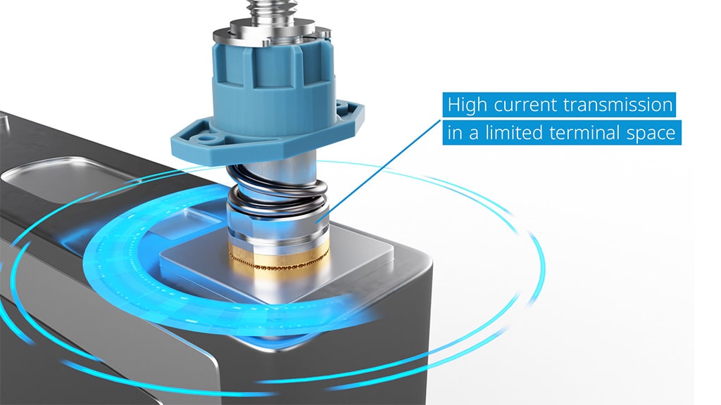Vi state concentrando sulla semplice integrazione? Allora la serie BCP-69x è la soluzione che fa per voi. Grazie al montaggio a flangia e al collegamento flessibile dei cavi, può essere facilmente integrata nei sistemi esistenti. Il pistone continuo permette una trasmissione affidabile di corrente fino a 300 A.
