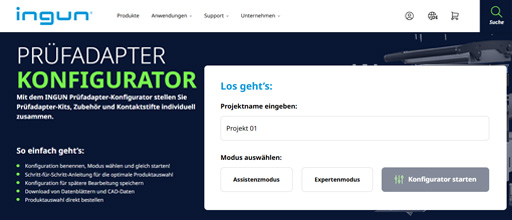 Con il configuratore di apparecchi di prova INGUN potete assemblare facilmente e rapidamente i vostri kit di apparecchi di prova, gli accessori di smontaggio adatti e le sonde di prova in base alle vostre esigenze individuali.
