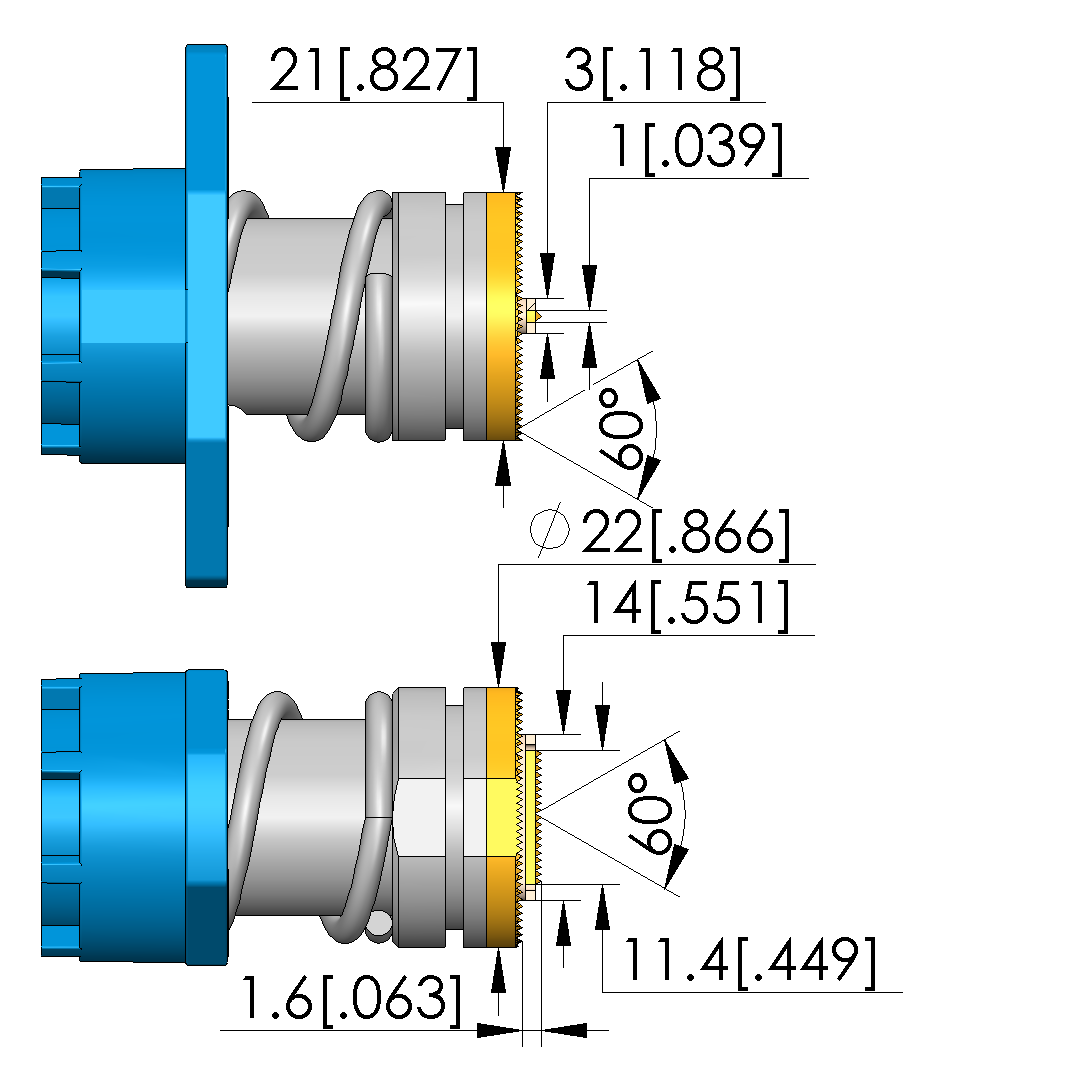 - Tipo di connessione sul contatto a molla: Connessione filettata