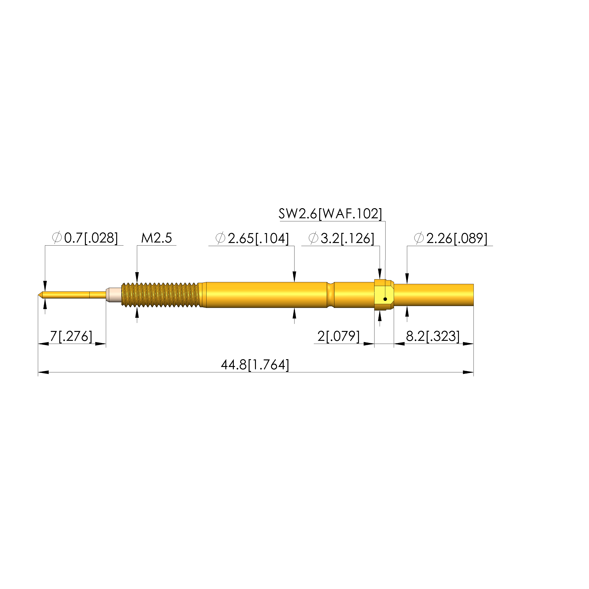 - Diametro del manicotto di contatto: 2,65 mm