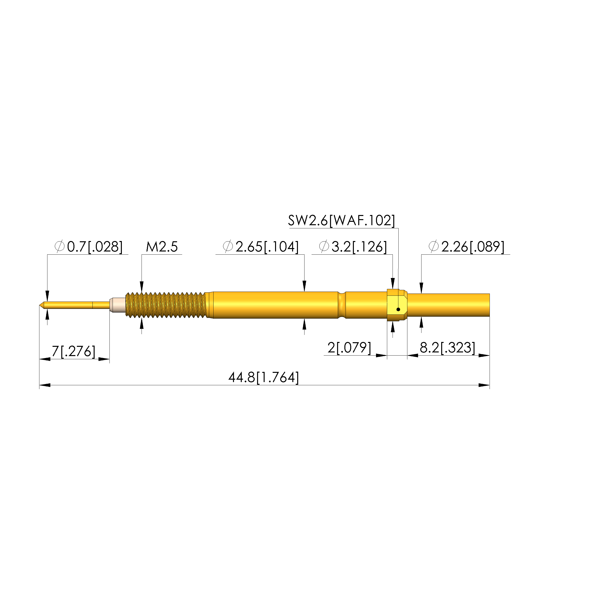 - Diametro del manicotto di contatto: 2,65 mm