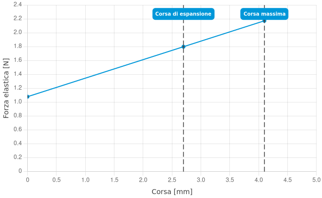 - Forza elastica con corsa di lavoro: 1,8 N