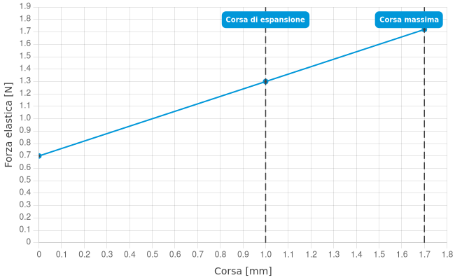 | Forza elastica con corsa di lavoro: | 1,3 N |