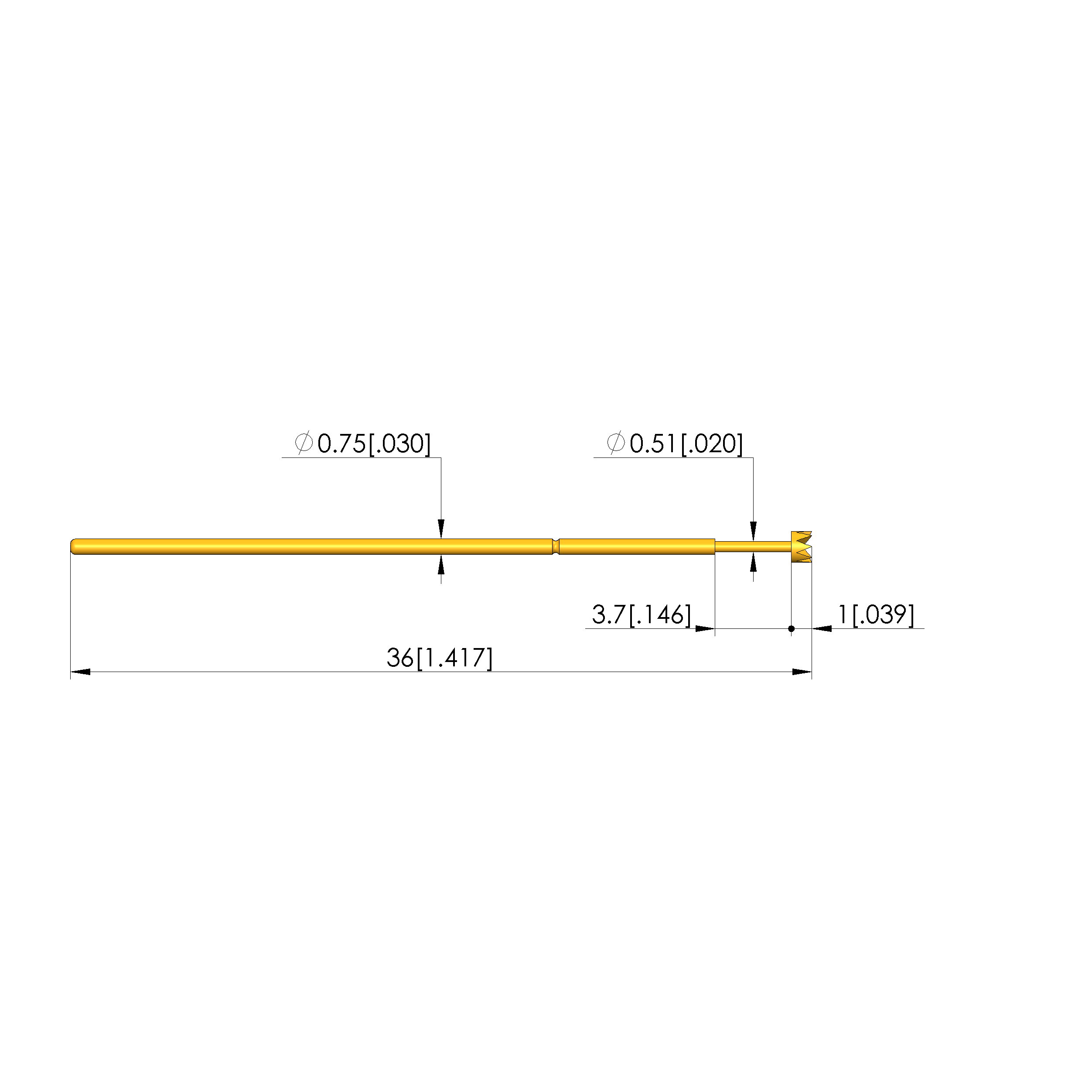 • Lunghezza totale: 36 mm