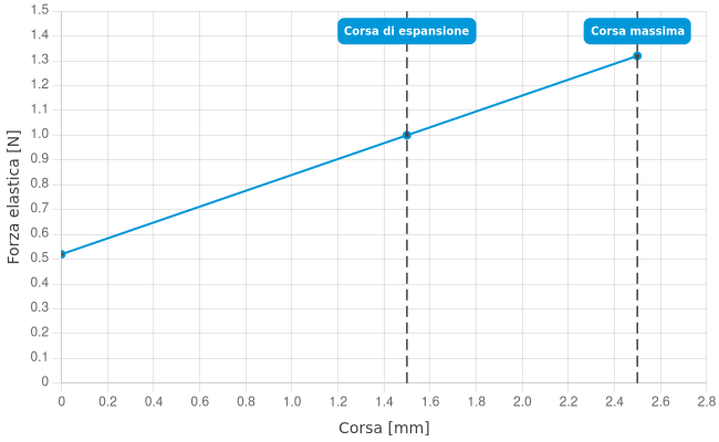 - Forza elastica con corsa di lavoro: 1 N