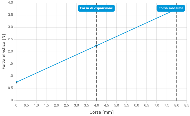 | Forza elastica con corsa di lavoro: | 2,25 N |