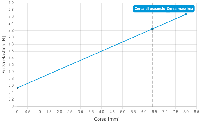 | Forza elastica con corsa di lavoro: | 2,25 N |