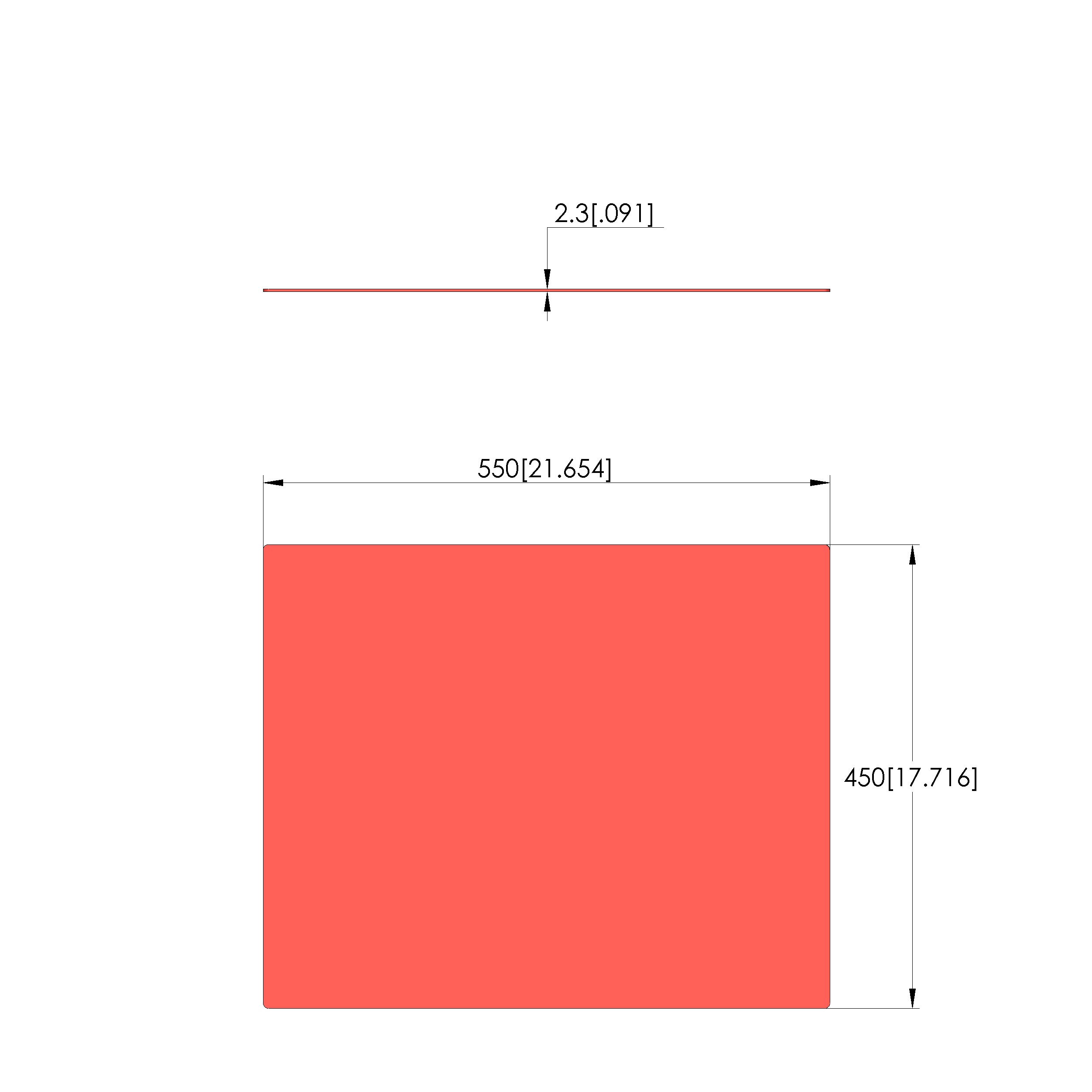 - Dimensioni esterne (LxPxA): 550 x 450 x 2,3 +/- 0,4 mm