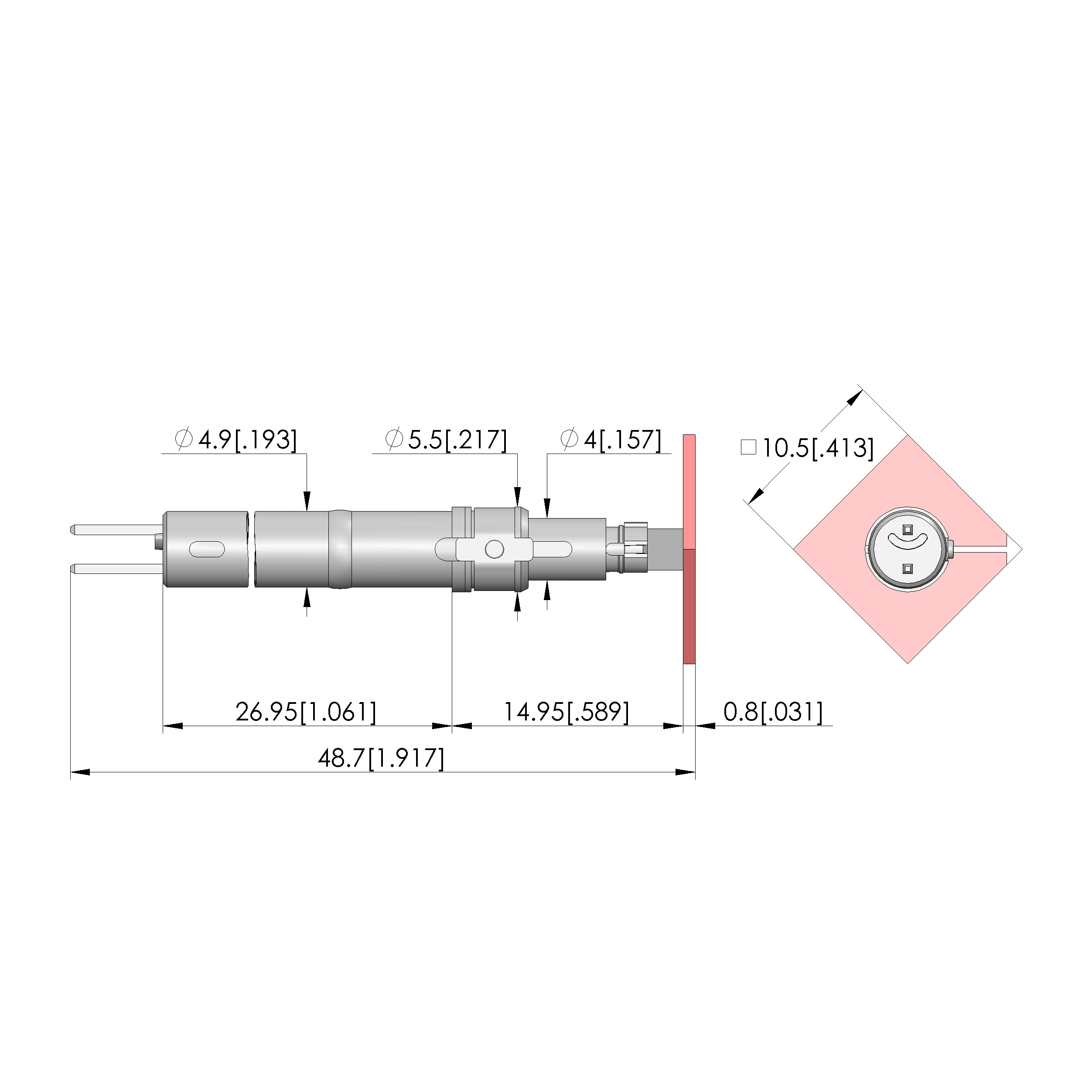 - Dimensioni esterne (LxPxA): 10,5 x 10,5 x 48,7 mm