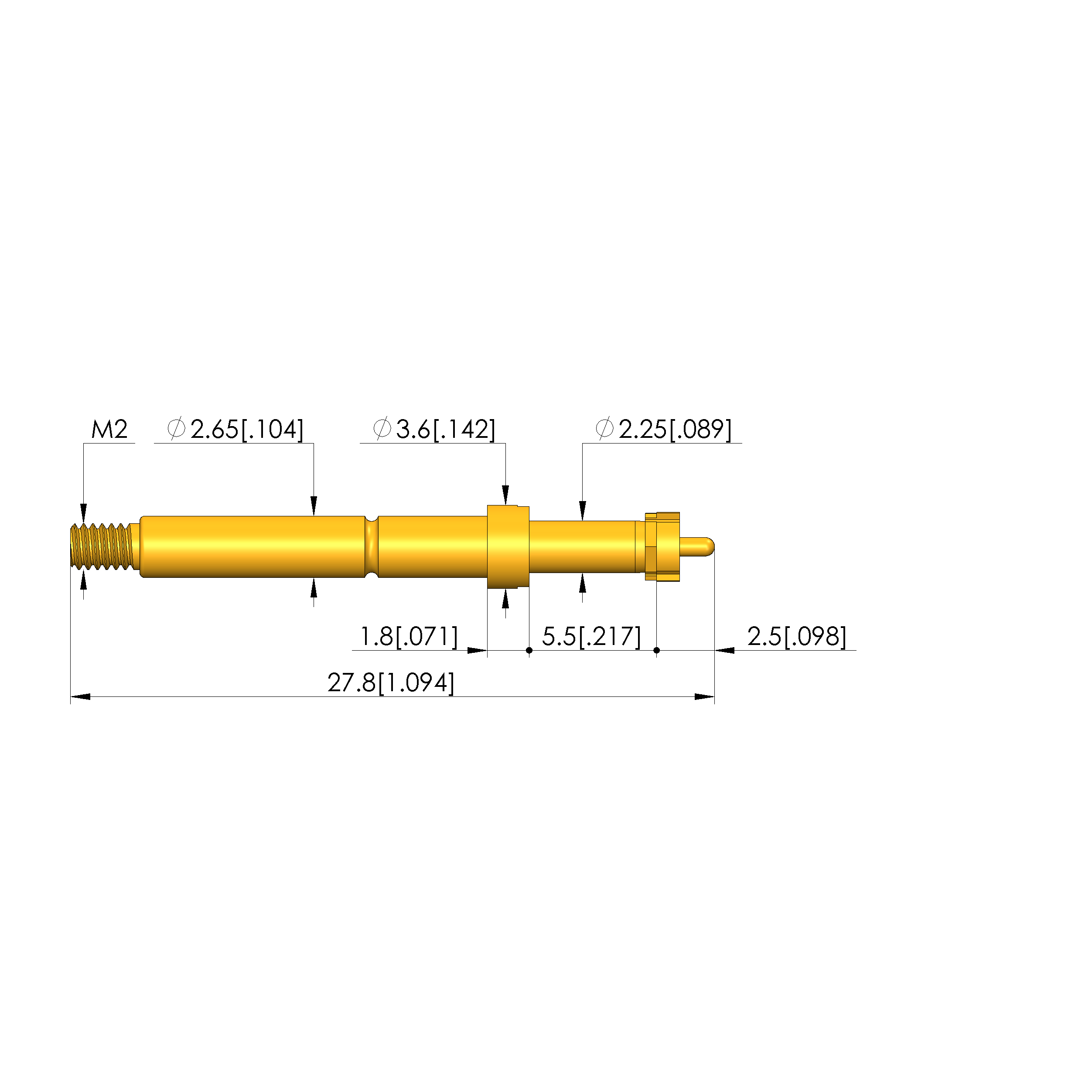 - Lunghezza totale: 27,8 mm